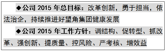 大會聽取了公司董事長吳清杰所做的題為《改革創新 勇于擔當 依法治企 持續推進好望角集團健康發展》的工作報告。他在報告中從九個方面系統而全面地總結了公司2014年的工作和取得的成績,主要是適應新常態,保持平常心,不斷深化改革創新,開創企業發展新局面;狠抓產業運營,公司整體經營水平穩中有升;制度建設日趨完善,管理水平不斷提高;深化改革成效明顯;績效考核穩步推進;模式創新進展良好;邢臺內陸港產業運營亮點頻現;企業文化建設再上新臺階;公司知名度及行業影響力進一步提升。