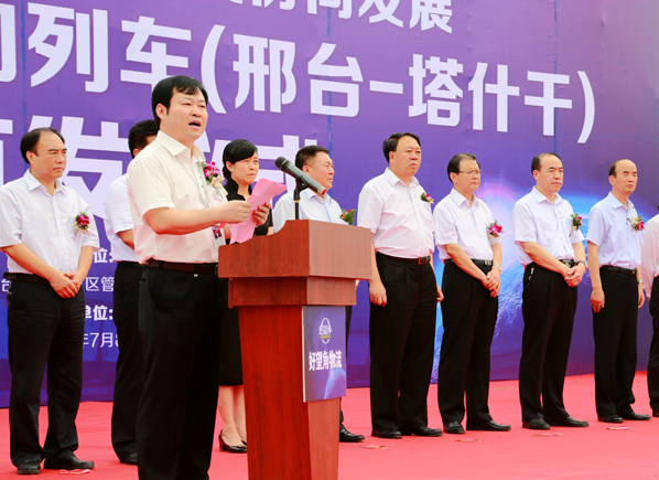 北京鐵路局副局長薛華剛,邢臺市人大黨組副書記、開發(fā)區(qū)黨工委書記、管委會主任段小勇在儀式上先后致辭; 河北好望角物流發(fā)展有限公司董事長吳清杰介紹班列開通情況。