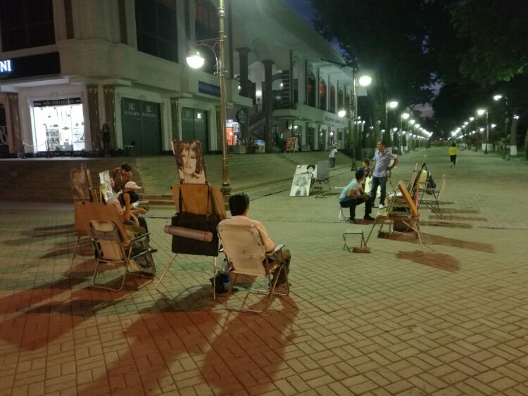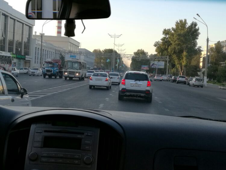 難得休閑一刻。我們驅車用晚餐時,停車后,步行到酒店。街頭藝術家,在十字路口的燈光下,以及寬闊的大街,使得夜幕下的城市,安詳和諧。風兒吹過,一陣陣愜意。別樣的塔什干,與我們來時的想像,太大相徑庭了。不信,你們也來看看,感受一下吧。